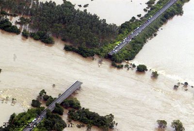 这是1月5日拍摄的巴西阿古杜市附近雅库伊河上一座被洪水冲垮的桥梁。