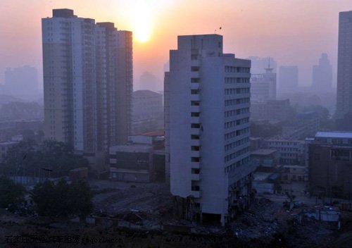 29日早上5时32分,位于石家庄栗康街18号的石家庄财政培训中心主楼进行了爆破拆除。短短的1分钟一座高楼应声倒地。